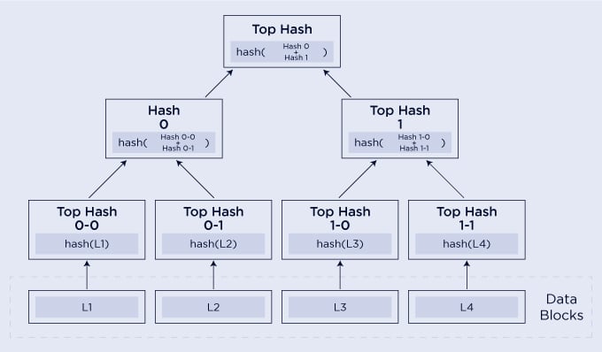 TARO uses a Merkle Tree to keep the content of the blockchain. The Merkle tree is an efficient way to store content in a distributed system. It allows for efficient verification and retrieval of data, in addition to allowing for fast propagation of information through the network. Merkle trees are used to verify that a piece of data has not been tampered with and that the data has been delivered correctly across all nodes in the network. Using the Merkle tree, each node can independently verify whether or not it has received all parts of the original message. Merkle trees are also used in software development to store information about individual objects or files on a computer system.